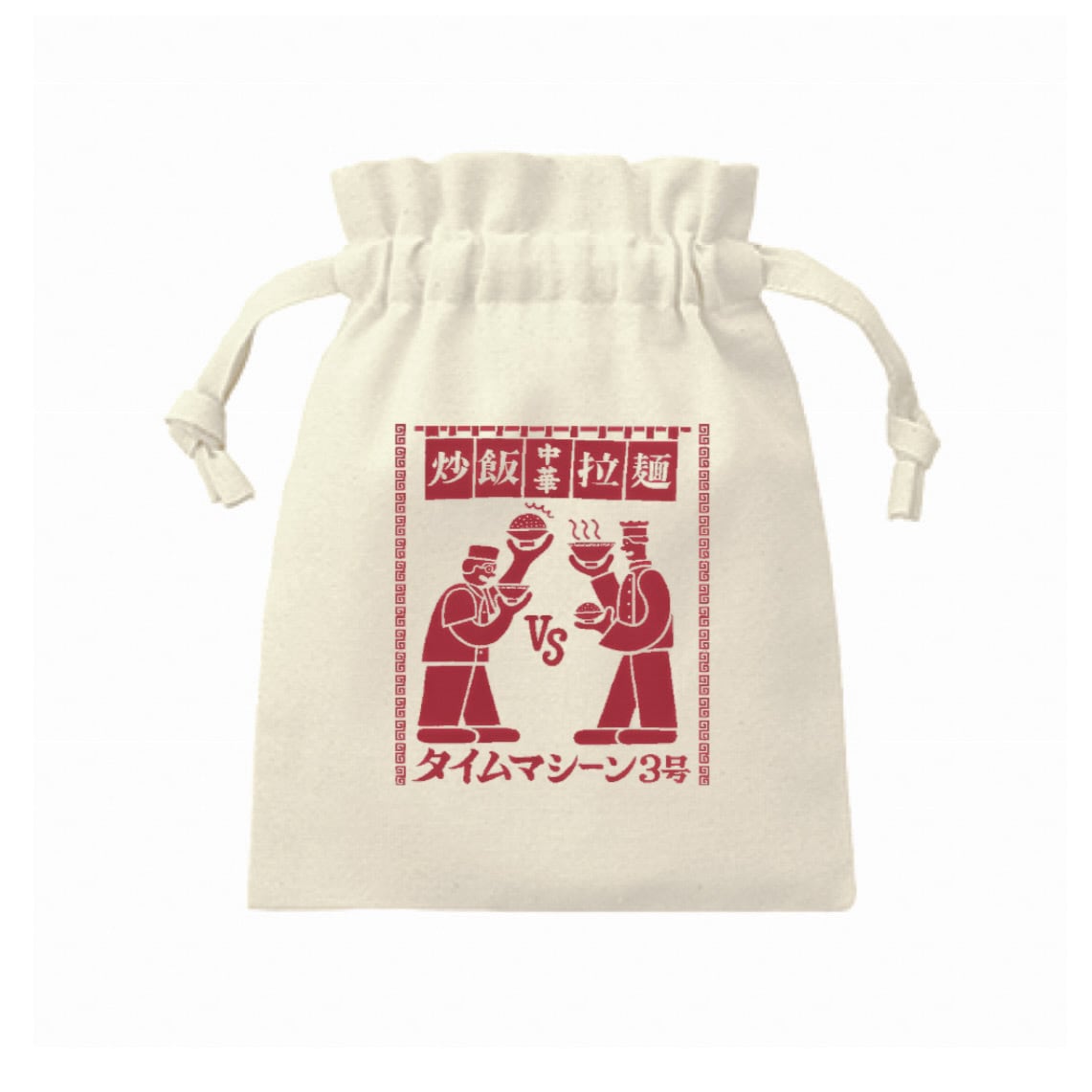 拉麺vs炒飯Sサイズ巾着(ナチュラル×赤)